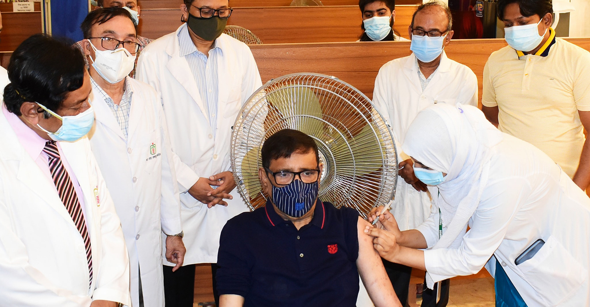 বুধবার (৩১ মার্চ) রাজধানীর বঙ্গবন্ধু শেখ মুজিব মেডিকেল বিশ্ববিদ্যালয়ে করোনা টিকার প্রথম ডোজ গ্রহণ করেন তিনি।