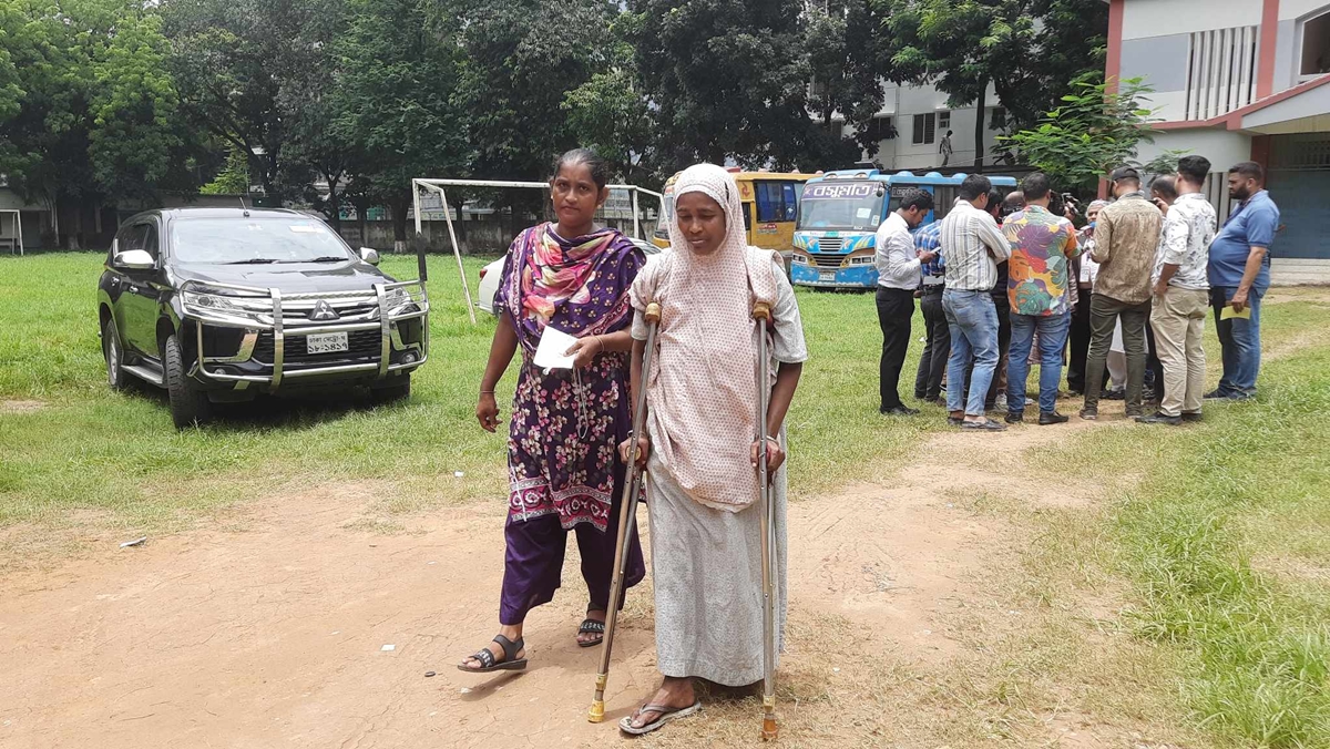 সরেজমিনে দেখা যায়, দুপুর ১২ টা ১৫ মিনিটের দিকে এক প্রতিবেশীকে সঙ্গে নিয়ে বনানী মডেল স্কুল ভোটকেন্দ্রে প্রবেশ করেন বৃদ্ধা জাহানারা। খুব কষ্টে ধীরে ধীরেই যেতে দেখা যায় ভোটকেন্দ্রের কক্ষের দিকে। এভাবেই ক্রাচে ভর দিয়ে তিনি তৃতীয় তলায় উঠে নিজের পছন্দের প্রার্থীকে ভোট দেন।