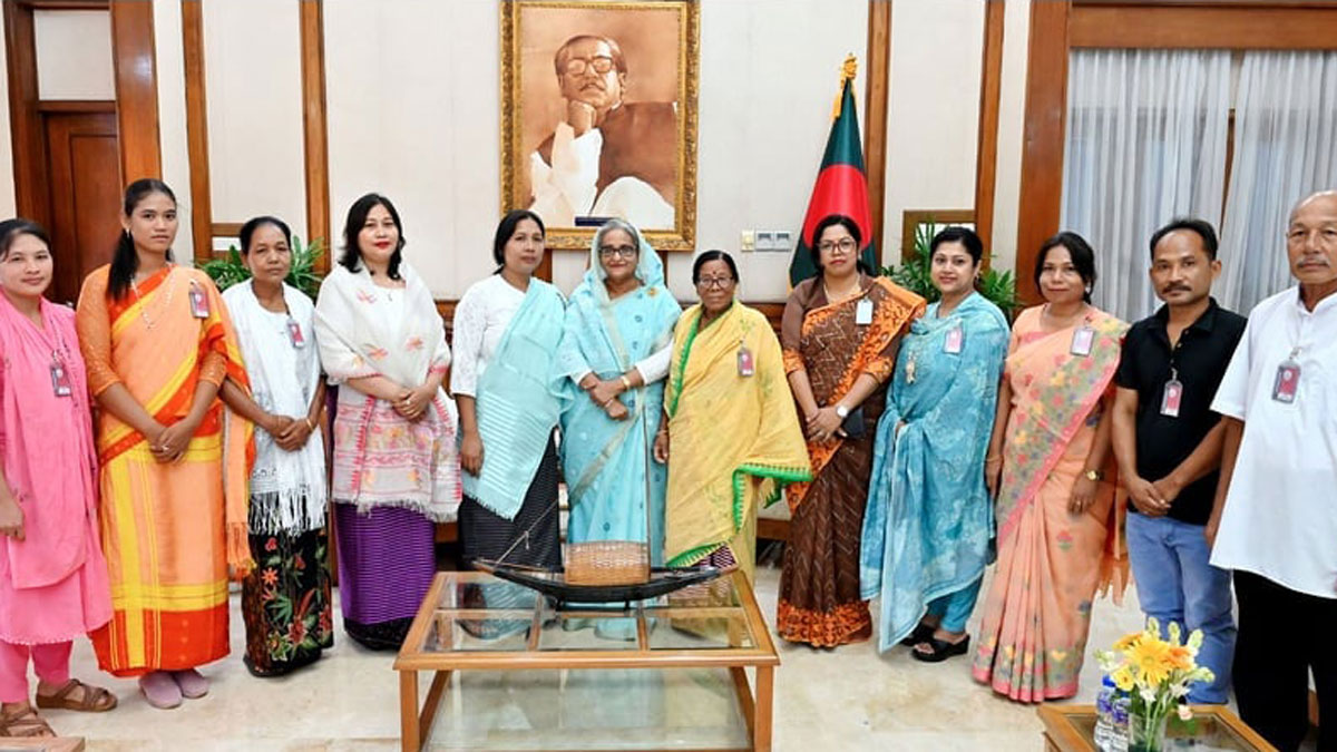 প্রধানমন্ত্রীর সঙ্গে কলাগাছের আঁশ থেকে শাড়ি তৈরি দলের সাক্ষাৎ