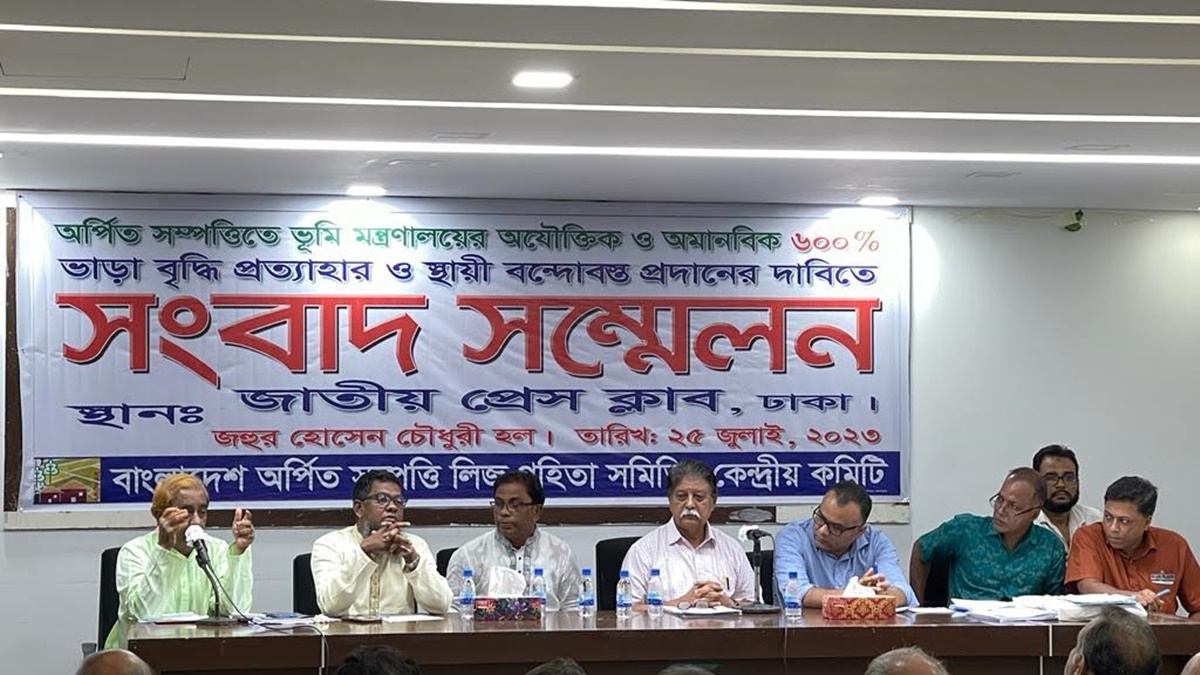মঙ্গলবার (২৫ জুলাই) প্রেসক্লাবে বাংলাদেশ অর্পিত সম্পত্তি লিজ গ্রহীতা সমিতি কর্তৃক আয়োজিত এক সংবাদ সম্মেলনে বক্তারা এসব কথা বলেন।