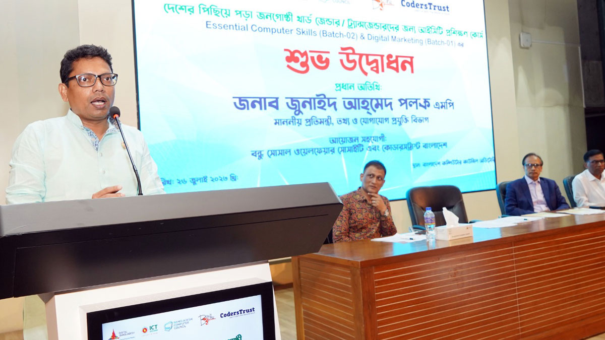 বুধবার (২৬ জুলাই) বাংলাদেশ কম্পিউটার কাউন্সিল অডিটরিয়ামে দেশের পিছিয়ে পড়া জনগোষ্ঠী থার্ড জেন্ডার/ট্রান্সজেন্ডারদের আইসিটি বিষয়ে দক্ষ করে তুলতে আইসিটি প্রশিক্ষণ কোর্সের উদ্বোধনী অনুষ্ঠানে প্রধান অতিথির বক্তৃতায় তিনি এ কথা বলেন।