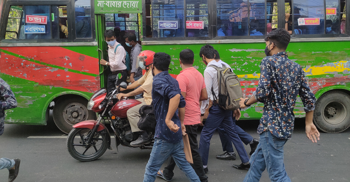 বাসে উঠতে না পেরে গন্তব্যে পৌঁছাতে অফিসমুখী মানুষজনকে মোটরসাইকেল রাইড শেয়ারিং সার্ভিসের দ্বারস্থ হতে দেখা যায়। আর এ বিষয়ে বাংলাদেশ সড়ক পরিবহন কর্তৃপক্ষের (বিআরটিএ) নির্দেশনা অমান্য করায় অনেক রাইডারকে জরিমানার মুখে পড়তে হয়েছে।