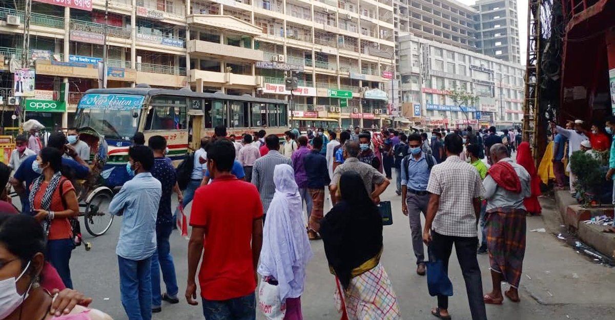 বৃহস্পতিবার (১ এপ্রিল) সকালে রাজধানীর মিরপুর ১, ২ ও ১০ নম্বর এলাকা ঘুরে দেখা গেছে, রাস্তায় হাজার হাজার যাত্রী বাসের জন্য অপেক্ষা করছেন। কিন্তু সরকারের নির্দেশনার কারণে পঞ্চাশ শতাংশের বেশি যাত্রী নিচ্ছে না গণপরিবহনগুলো। তবে কিছু কিছু পরিবহনকে নিয়ম না মেনে অতিরিক্ত যাত্রী নিতে দেখা গেছে।