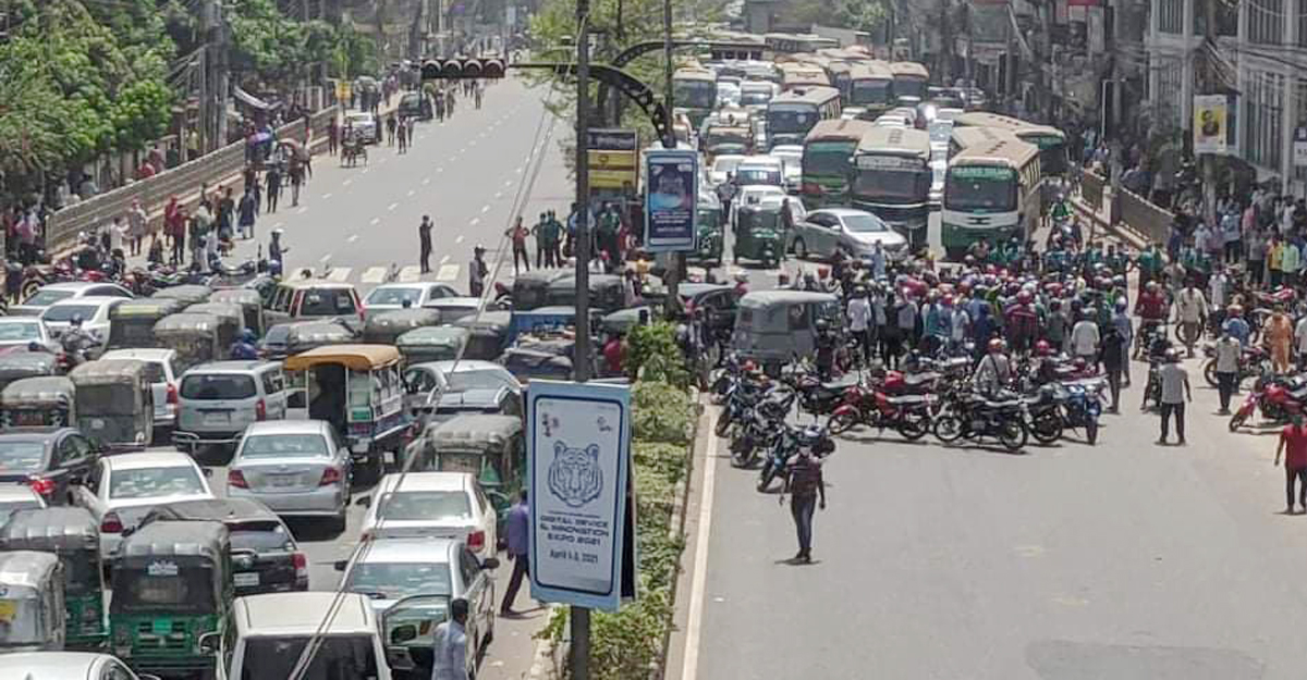 ধানমন্ডিতে মোটরসাইকেল চালকদের সড়ক অবরোধ