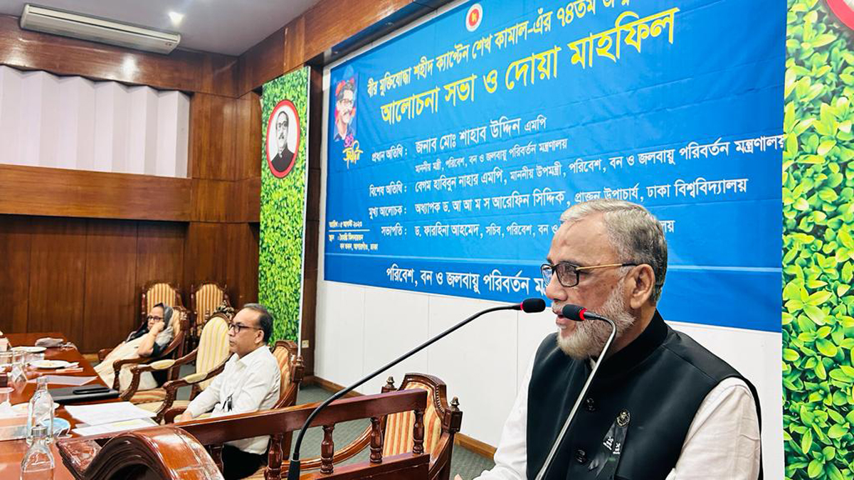 পরিবেশ, বন ও জলবায়ু পরিবর্তন মন্ত্রী মো. শাহাব উদ্দিন বলেছেন, জাতির পিতা বঙ্গবন্ধু শেখ মুজিবুর রহমানের জ্যেষ্ঠ পুত্র বহুমাত্রিক প্রতিভার অধিকারী বীর মুক্তিযোদ্ধা শেখ কামালের আদর্শ হৃদয়ে ধারণ করে তরুণ সমাজকে দেশ গড়ায় আত্মনিয়োগ করতে হবে। দেশ ও সমাজ ভাবনায় শেখ কামাল মাত্র ২৬ বছরের জীবনে বাঙালির সংস্কৃতি ও ক্রীড়াক্ষেত্রের এক বিরল প্রতিভাবান সংগঠক ও উদ্যোক্তা হিসেবে অসামান্য উচ্চতায় নিজেকে প্রতিষ্ঠিত করে গিয়েছিলেন। একই সঙ্গে রাজনীতিতেও ছিলেন সমান তৎপর। বর্তমান প্রজন্ম শেখ কামালের আদর্শে অনুপ্রাণিত হলে দেশের উন্নয়নে গুরুত্বপূর্ণ ভূমিকা পালন করতে পারবে।