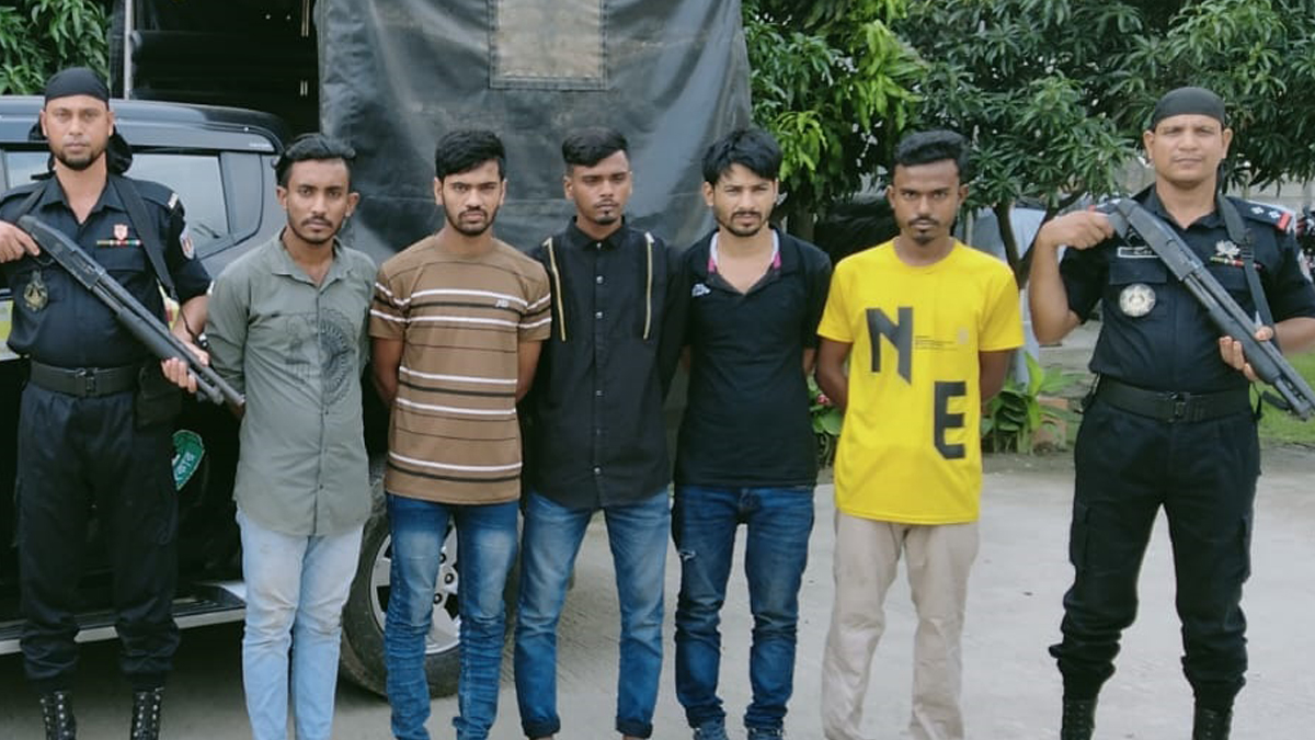 আটককৃত হলেন, নিয়ামুল শরীফ (৩০), মো. রাকিব (১৯), পিয়াল মোল্লা (২০), মো. মুন্না (১৯) ও মো. ইসাহক (২৭)।