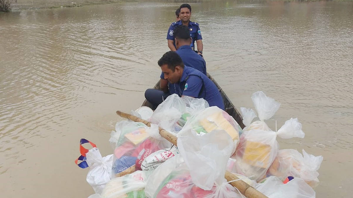 বন্যাকবলিত দুর্গম এলাকায় পুলিশের ‘ভালোবাসার থলে’