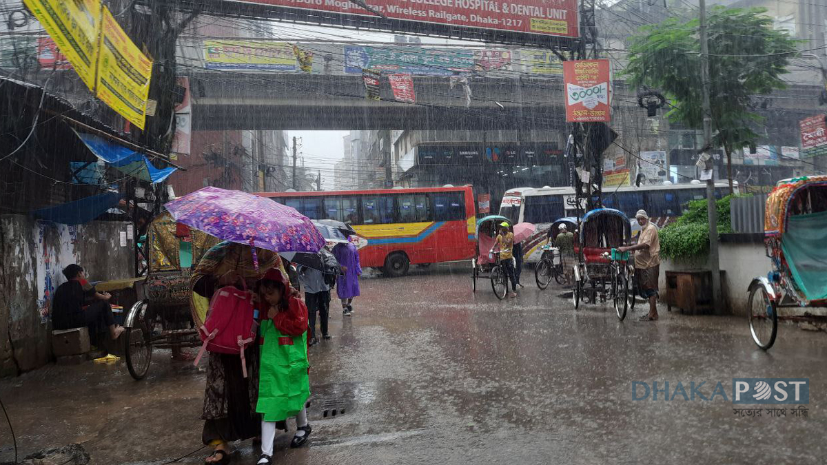 বৃষ্টি মাথায় নিয়েই রাজধানীর আগারগাঁও থেকে মহাখালী অফিসে গেছেন বেসরকারি চাকরিজীবী তুষার আহমেদ। তিনি ঢাকা পোস্টকে বলেন, ‘সকালে অফিসে আসার জন্য যে সময় বের হয়েছি—তখন ঝুম বৃষ্টি। বৃষ্টির মধ্যেই ছাতা মাথায় সড়কে বাসের জন্য অপেক্ষা করতে হয়েছে। কিন্তু রাস্তায় বাসের সংখ্যা অনেক কম ছিল। দীর্ঘ সময় বৃষ্টির মধ্যে কাকভেজা শতশত অফিসগামীদের দাঁড়িয়ে থাকতে দেখেছি।’
