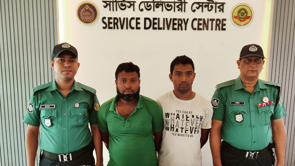 গ্রেপ্তারকৃতরা হলেন, গাইবান্ধার সাদুল্ল্যাপুর এলাকার মধু সরকারের ছেলে মো. শাহীন সরকার (৩৫) ও ঢাকার কেরানীগঞ্জ এলাকার আবদুল মজিদের ছেলে মো. মনির হোসেন (৩৬)।