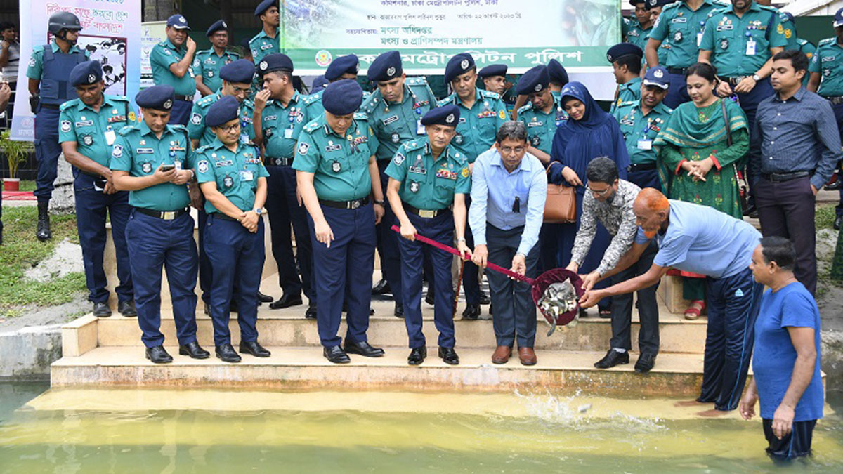 এ কর্মসূচিতে পুলিশ লাইন্স পুকুরে রুই, কাতলা, মৃগেল ও কালিবাউস জাতীয় মাছের ৪০০ কেজি পোনা অবমুক্ত করেন ডিএমপি কমিশনার।