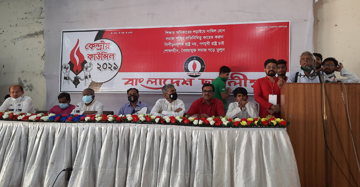 রোববার (৪ এপ্রিল) জাতীয় প্রেসক্লাবের হল রুমে জাতীয় সমাজতান্ত্রিক দলের অঙ্গ সংগঠন বাংলাদেশ ছাত্রলীগের কেন্দ্রীয় কাউন্সিলে বিশেষ অতিথির বক্তব্যে তিনি এ আহ্বান জানান।
