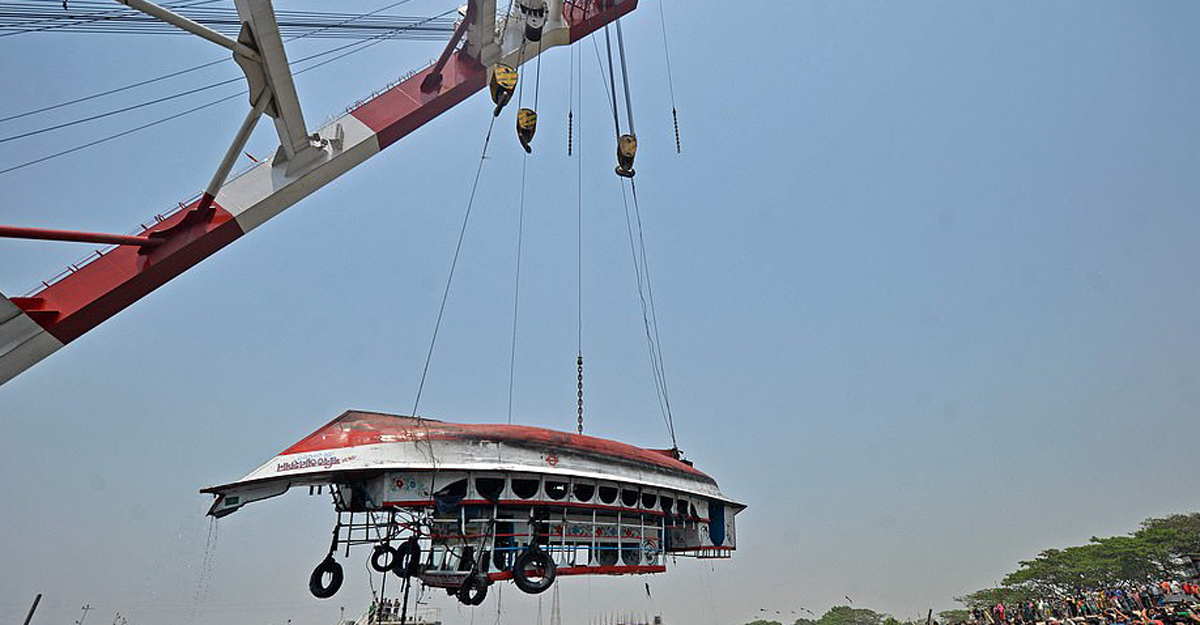 পানির নিচ থেকে তোলা হয়েছে দুর্ঘটনাকবলিত লঞ্চটি