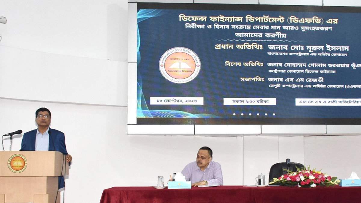 অনুষ্ঠানে সভাপতিত্ব করেন ডেপুটি কম্পট্রোলার অ্যান্ড অডিটর জেনারেল (অ্যাকাউন্টস অ্যান্ড রিপোর্ট) এস এম রেজভী। অনুষ্ঠানে অন্যান্যের মধ্যে উপস্থিত ছিলেন কন্ট্রোলার জেনারেল, ডিফেন্স ফাইন্যান্স মোহাম্মদ গোলাম ছরওয়ার ভূঁঞাসহ প্রতিরক্ষা অর্থ বিভাগের নবম গ্রেড ও তদূর্ধ্ব পর্যায়ের কর্মকর্তারা।