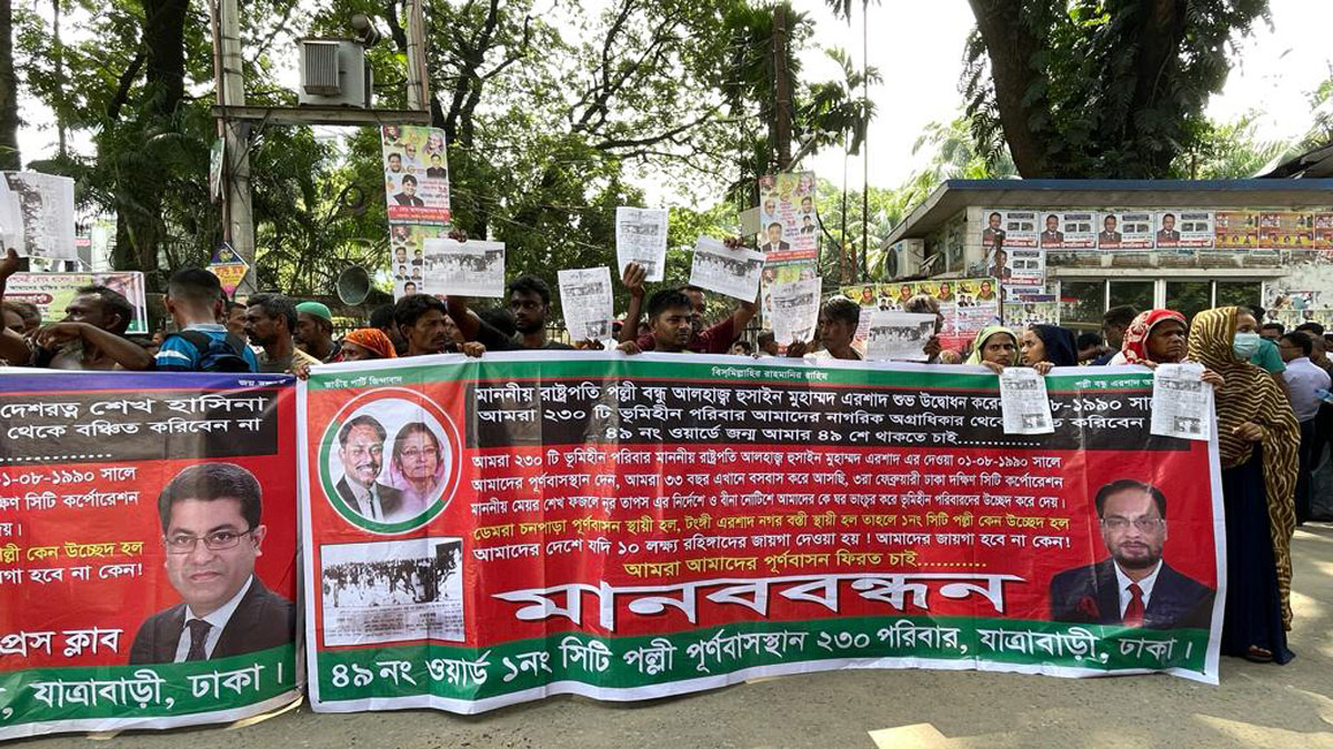 রাজধানীর যাত্রাবাড়ীর ৪৯নং ওয়ার্ডের ১নং সিটি পল্লীর বাসিন্দারা তাদের বাসস্থান ফিরিয়ে দেওয়ার দাবি জানিয়েছে।