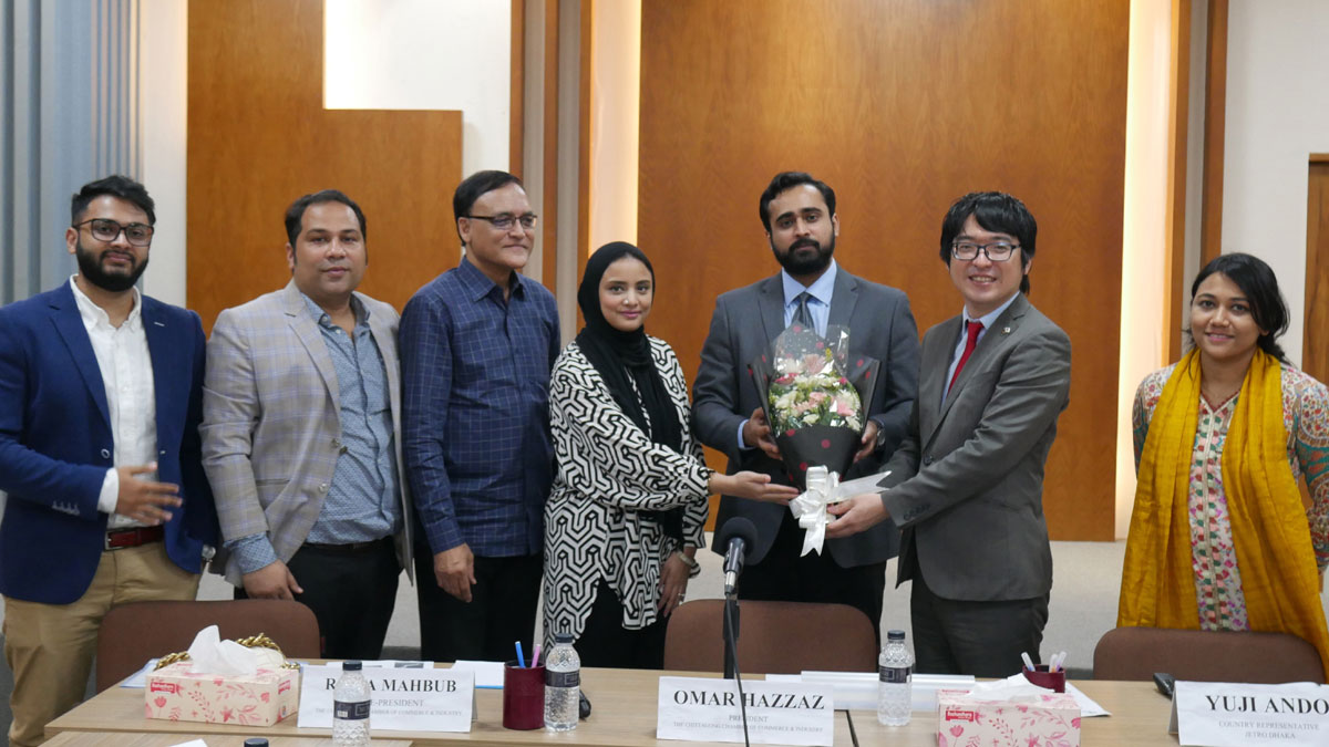 সভায় সিসিসিআই সভাপতি ওমর হাজ্জাজ বলেন, জাপান বাংলাদেশের বিশ্বস্ত বন্ধু। দেশের বর্তমান অবকাঠামো উন্নয়নে বড় বিনিয়োগ রয়েছে জাপানের। এর মধ্যে মাতারবাড়ী গভীর সমুদ্রবন্দর নির্মাণ, ঢাকা মেট্রোরেল এবং শাহজালাল বিমান বন্দরে তৃতীয় টার্মিনাল রয়েছে। জাপানের বিনিয়োগকারীদের সব ধরনের সহায়তা করতে চিটাগাং চেম্বার জাপান ডেস্ক চালু করেছে। চিটাগাং চেম্বার আগামী বছর বে অব বেঙ্গল গ্রোথ সামিট আয়োজনের পরিকল্পনা নিচ্ছে। এছাড়া চিটাগাং চেম্বার থেকে একটি বাণিজ্যিক প্রতিনিধিদল জাপান সফর করতে চায়।