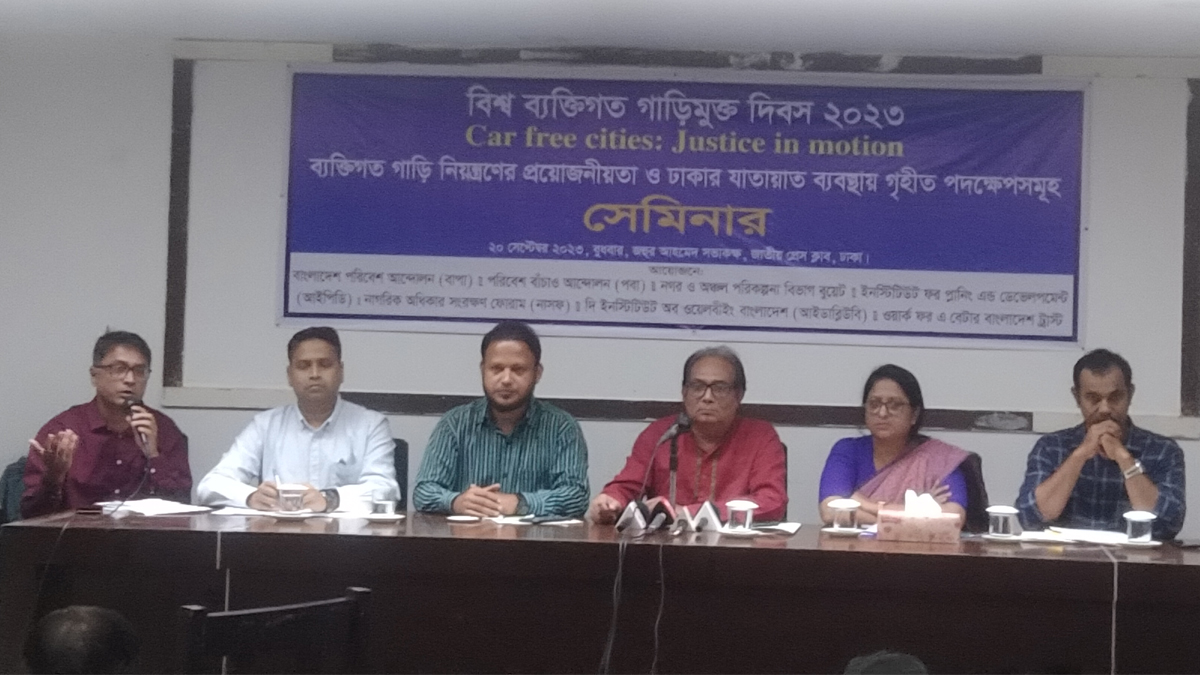 আলোচনা সভায় বক্তারা বলেন, রাজধানীতে মানসম্মত গণপরিবহনের অভাবে এবং ব্যক্তিগত গাড়ির নিয়ন্ত্রণ ও কার্যকর ব্যবস্থাপনা না থাকবার কারণে ব্যক্তিগত গাড়ির সংখ্যা বেড়ে চলছে। প্রতিনিয়তই বাড়ছে যানজট। আমাদের ব্যক্তিগত গাড়ি ব্যবহারকারীরা বলে থাকেন, গণপরিবহন উন্নত হলে ব্যক্তিগত গাড়ির এত চাহিদা থাকত না। মানসম্মত গণপরিবহনের অভাবে বাধ্য হয়েই তারা ব্যক্তিগত গাড়ি ব্যবহার করছে। ব্যক্তিগত গাড়িই ঢাকার সড়কে যানজটের প্রধান কারণ। ঢাকা শহরে মানসম্মত গণপরিবহন নেই বললেই চলে। মেট্রোরেলের একটি লাইন আংশিক চালু হলেও ঢাকার যোগাযোগ চাহিদার খুবই অল্প পরিমাণ লোককে ধারণ করতে পারবে এই লাইন।