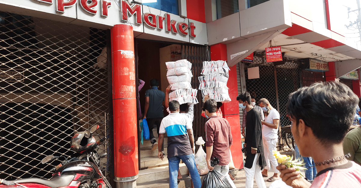 শাটার বন্ধ রেখেই পাইকারি মার্কেটে চলছে বেচাকেনা