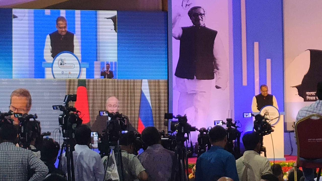 অনুষ্ঠানে রাশিয়া থেকে ভার্চুয়ালি যুক্ত হয়ে রুশ প্রেসিডেন্ট বলেন, বাংলাদেশ আমাদের পরীক্ষিত বন্ধু। আমাদের সম্পর্ক সমতা, পরস্পরের জন্য শ্রদ্ধা ও পরষ্পরের স্বার্থ মেনে নেওয়ার ভিত্তিতে তৈরি হয়েছে। মুক্তিযুদ্ধে বাংলাদেশকে সহায়তার মাধ্যমে দুই দেশের সম্পর্ক গড়ে উঠেছে। এরপর থেকে বাংলাদেশের অর্থনৈতিক উন্নয়নে রাশিয়া কাজ করছে। বড় শিল্প ও বিদ্যুৎ কেন্দ্র নির্মাণে রাশিয়া সহায়তা করেছে। গত বছর কূটনৈতিক সম্পর্কের সুবর্ণ জয়ন্তী উদযাপন করেছে দুই দেশ।