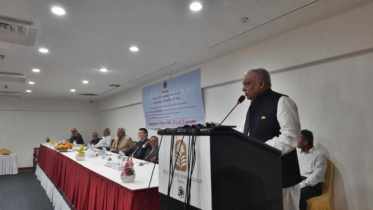 রোববার (৮ অক্টোবর) সকালে রাজধানীর সোনারগাও হোটেলে গণ চীনের ৭৪তম প্রতিষ্ঠাবার্ষিকী উপলক্ষ্যে বাংলাদেশ-চায়না সিল্ক রোড ফোরাম আয়োজিত এক আলোচনা সভায় তিনি এসব কথা বলেন।