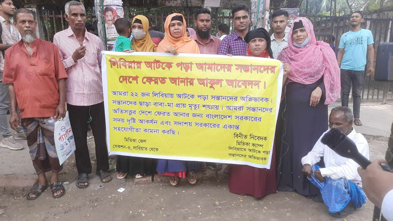 মানববন্ধনের মূল আয়োজক মাসুদ মোল্লা বলেন, আমার ছেলে জাহিদকে ইতালি নেওয়ার কথা বলে কুমিল্লার দালাল জুয়েল ৬ লাখ টাকা নিয়েছিল। আমার ছেলের মতো এরকম আরও ২০-২১ জনের কাছ থেকে টাকা নিয়েছিল সে। কিন্তু অবৈধভাবে ইতালি যাওয়ার পথে তারা লিবিয়ায় আটকে পড়ে এবং সবাইকে সেখানকার মৃত্তিকা জেলে রাখা হয়েছে। এ খবর শোনার পর থেকে আমরা দালালের সঙ্গে যোগাযোগ করার চেষ্টা করেছি কিন্তু কোনো পাত্তা পাইনি।
