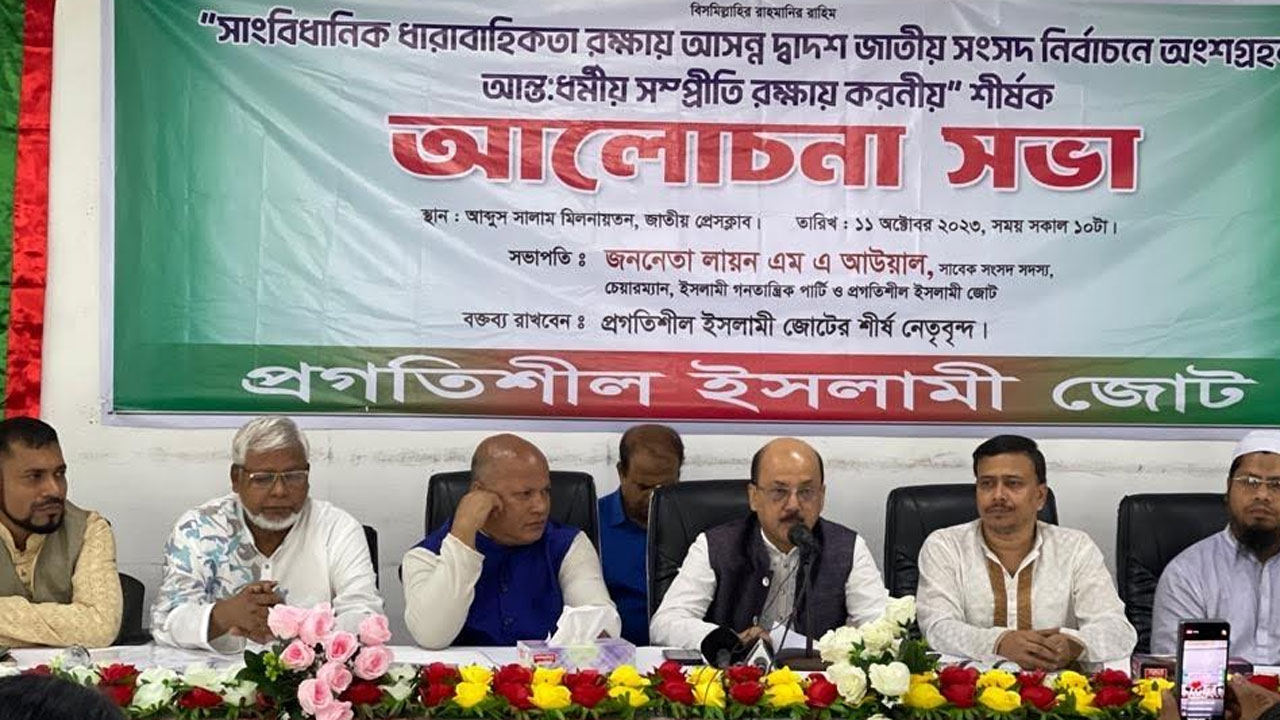 বুধবার (১১ অক্টোবর) জাতীয় প্রেস ক্লাবের আবদুস সালাম হলে আয়োজিত এক আলোচনা সভায় এ আহ্বান জানান প্রগতিশীল ইসলামী জোটের চেয়ারম্যান এম এ আউয়াল।