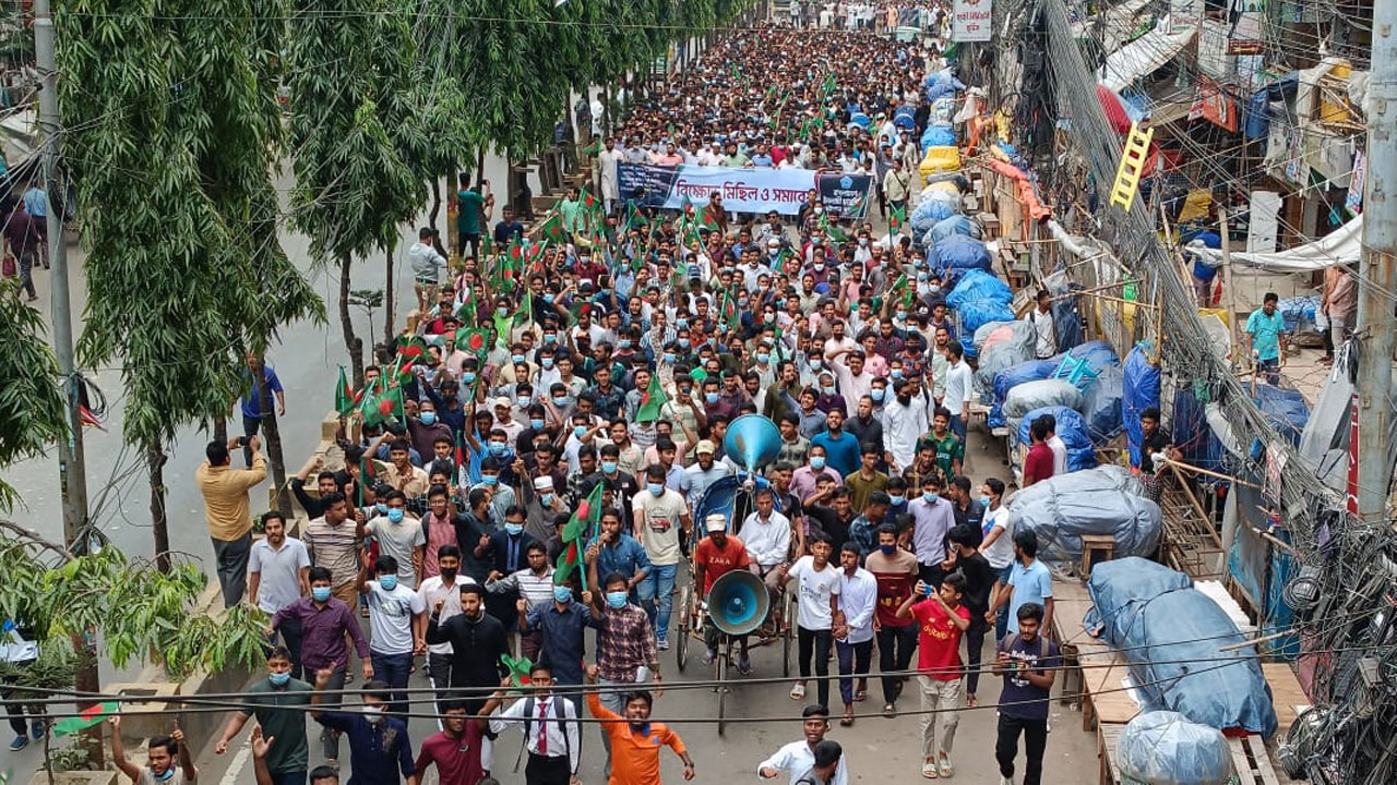 জানা গেছে, আওয়ামী লীগ সরকারের পদত্যাগ, নির্দলীয় ও নিরপেক্ষ তত্ত্বাবধায়ক সরকার প্রতিষ্ঠা এবং নিরাপদ ক্যাম্পাসসহ সাত দফা দাবিতে হঠাৎ মিছিল শুরু করেন ছাত্রশিবিরের নেতাকর্মীরা। মিছিলে সরকারবিরোধী নানা স্লোগান দেওয়া হয়। মিছিল শেষে সংক্ষিপ্ত সমাবেশে জামায়াতের আমির ডা. শফিকুর রহমানসহ কারাবন্দি রাজনৈতিক নেতাদের মুক্তির দাবি জানান বক্তারা।