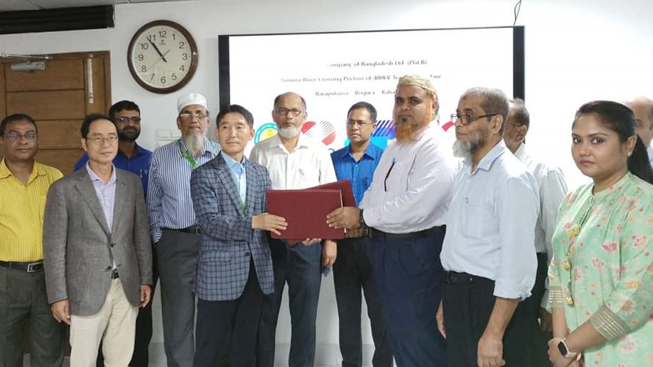 বগুড়া-কালিয়াকৈর ৪০০ কেভি সঞ্চালন লাইনের যমুনা রিভারক্রসিং অংশের কার্যক্রম সুষ্ঠুভাবে সম্পন্নের লক্ষ্যে দুটি কোরিয়ান ও একটি দেশীয় প্রতিষ্ঠানের সমন্বয়ে গঠিত প্রতিষ্ঠানকে কনসালটেন্ট হিসেবে নিয়োগ করেছে পাওয়ার গ্রিড কোম্পানি অব বাংলাদেশ লিমিটেড (পিজিসিবি)।