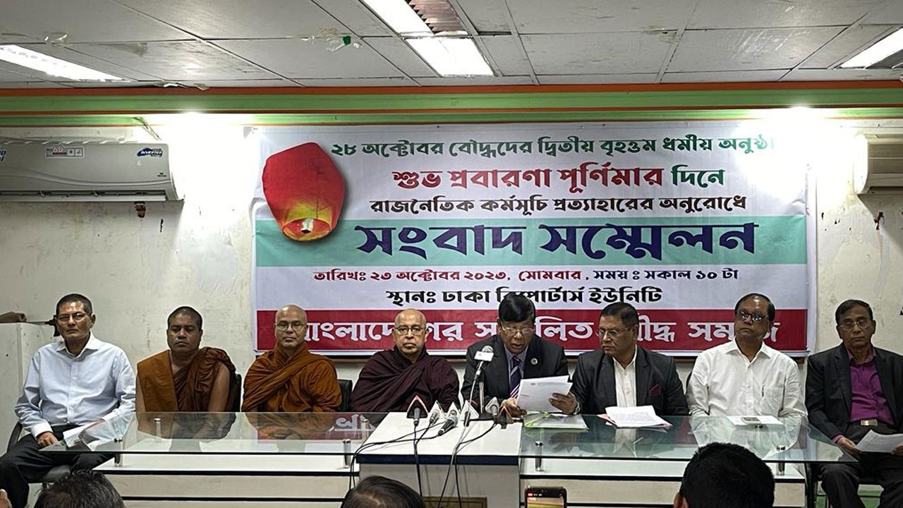 সোমবার (২৩ অক্টোবর) ঢাকা রিপোর্টার্স ইউনিটিতে বাংলাদেশ সম্মিলিত বৌদ্ধ সমাজ আয়োজিত সংবাদ সম্মেলনে বক্তারা এ আহ্বান জানান।