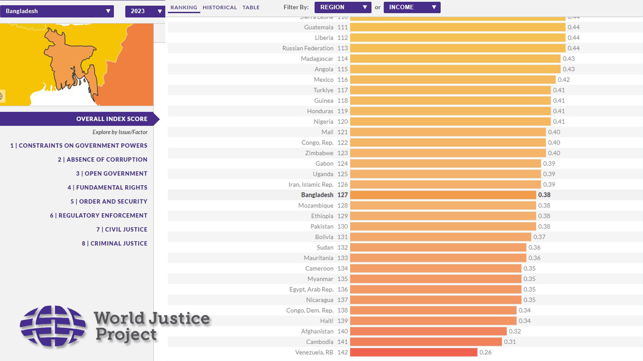 আইনের শাসন সূচকে বিশ্বে বাংলাদেশের অবস্থান ১২৭