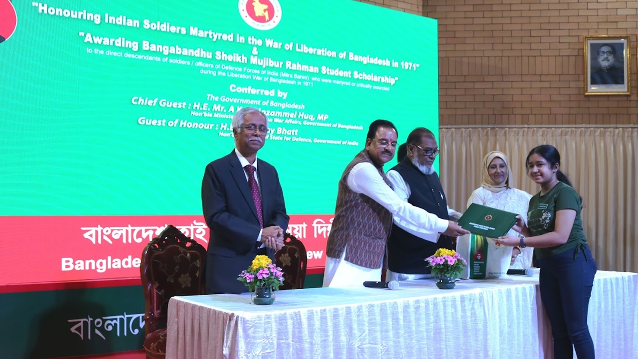 মুক্তিযুদ্ধের সময় শহীদ ও গুরুতর আহত ভারতীয় সেনাদের সম্মান জানাতে ‘বঙ্গবন্ধু শেখ মুজিবুর রহমান স্টুডেন্ট স্কলারশিপ’ হস্তান্তর করা হয়েছে।