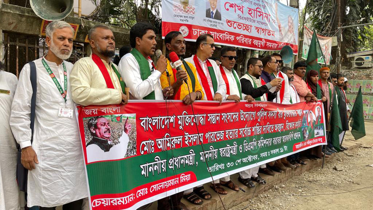 ঢাকায় শনিবার (২৮ অক্টোবর) সংঘর্ষে নিহত পুলিশ সদস্য মো. আমিরুল ইসলাম পারভেজ হত্যাকারীদের সর্বোচ্চ শাস্তির দাবি বাংলাদেশ মুক্তিযোদ্ধা সন্তান সংসদ।