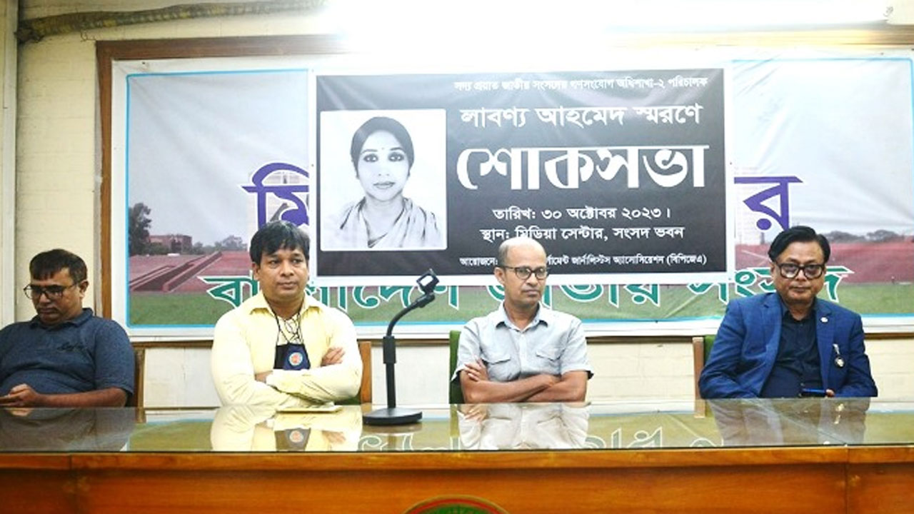 সোমবার (৩০ অক্টোবর) সংসদ ভবনের মিডিয়া সেন্টারে বাংলাদেশ পার্লামেন্ট জার্নালিস্ট অ্যাসোসিয়েশনের (বিপিজেএ) উদ্যোগে আয়োজিত বাংলাদেশ জাতীয় সংসদ সচিবালয়ের গণসংযোগ অধিশাখা-২ এর পরিচালক লাবণ্য আহমেদ এর স্মরণে শোকসভায় বক্তারা এসব কথা বলেন।