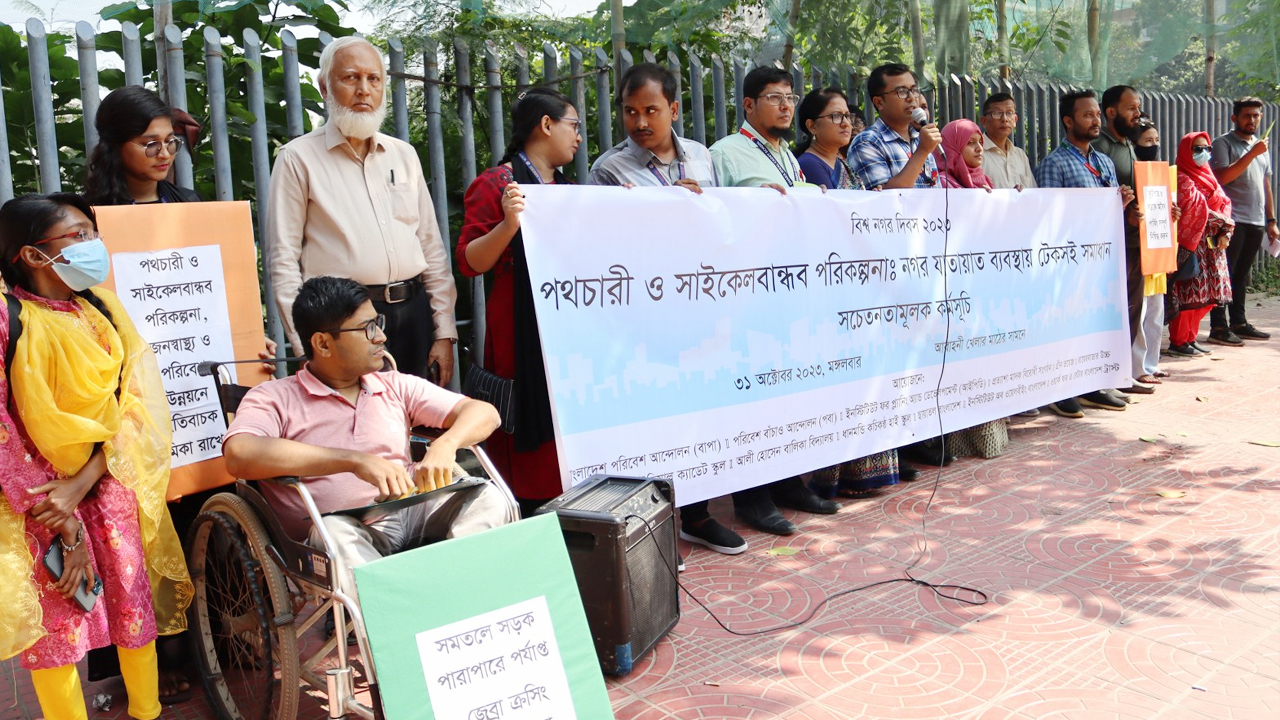 বক্তারা আরও বলেন, পরিকল্পিত নগরায়নের অভাবে ঢাকা মহানগরী ক্রমাগত চ্যালেঞ্জের সম্মুখীন হচ্ছে। জনসংখ্যার আধিক্যের সাথে সাথে এ শহরে যাতায়াত চাহিদা ও যান্ত্রিক যানবাহন বৃদ্ধি পাওয়ায় ঢাকা পরিণত হয়েছে যানজটের শহরে। সেই সাথে বৃদ্ধি পেয়েছে জ্বালানি ব্যয়, দূষণ ও সড়ক দুর্ঘটনা এবং পক্ষান্তরে পরিবেশ ও জনস্বাস্থ্যের উপর নেতিবাচক প্রভাব বৃদ্ধি পেয়েছে বহুগুণে। পথচারী ও সাইকেলবান্ধব যাতায়াত ব্যবস্থা, যাতায়াত চাহিদা পূরণের পাশাপাশি দৈনন্দিন শারীরিক কার্যক্রমের চাহিদা পূরণ করে এবং জ্বালানি ব্যবহার ও কার্বন নির্গমন হ্রাস করে, যা পরিবেশ ও জনস্বাস্থ্য উভয় ক্ষেত্রেই ইতিবাচক অবদান রাখে।
