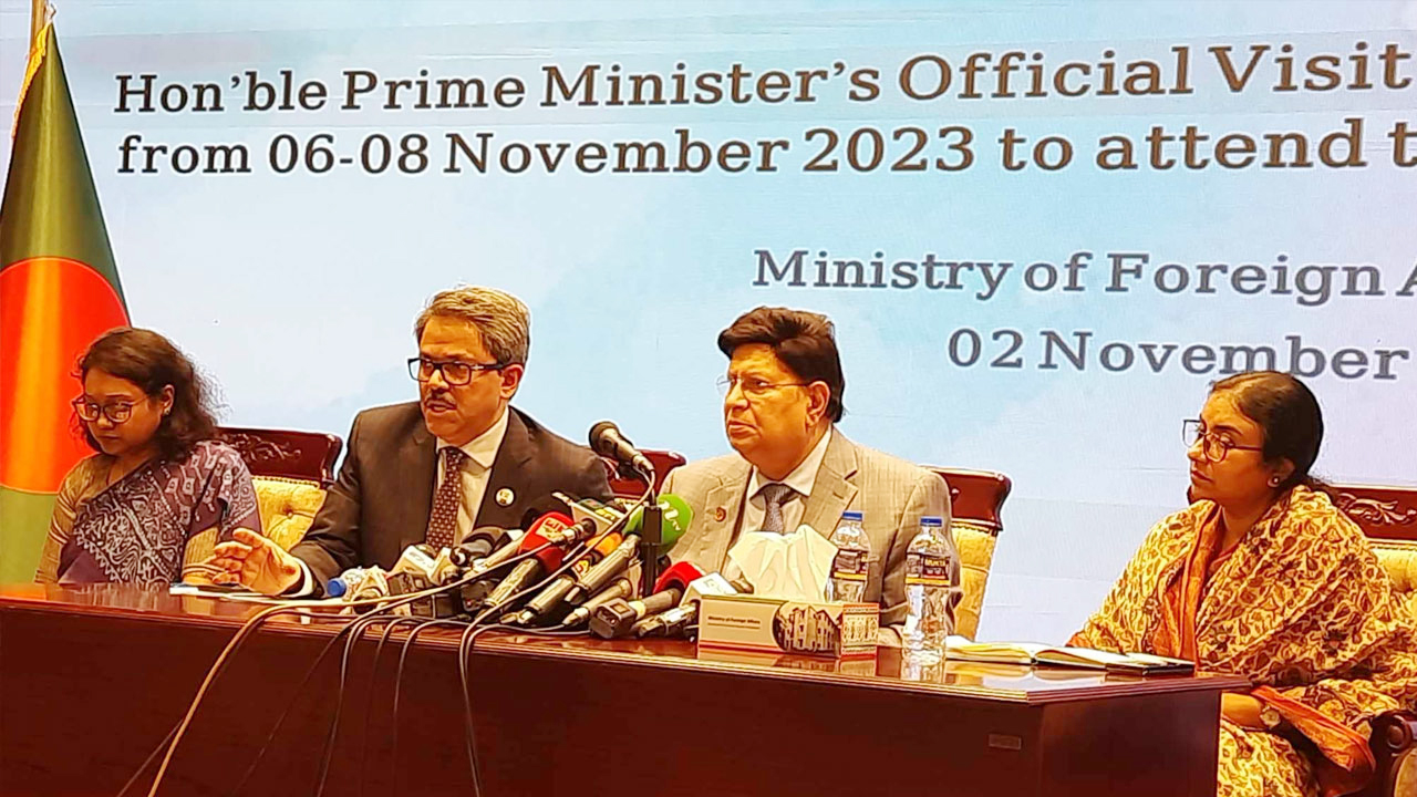 সংবাদ সম্মেলনে পররাষ্ট্র প্রতিমন্ত্রী মো. শাহরিয়ার আলম ও পররাষ্ট্র মন্ত্রণালয়ের মুখপাত্র সেহেলী সাবরীন উপস্থিত ছিলেন।