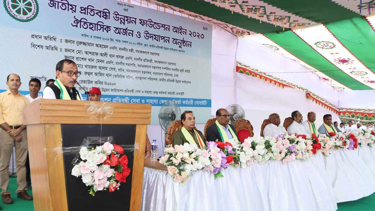 সমাজকল্যাণ মন্ত্রী নুরুজ্জামান আহমেদ বলেছেন, জাতীয় প্রতিবন্ধী উন্নয়ন ফাউন্ডেশন আইন ২০২৩ একটি মাইলফলক। এ আইনের ফলে প্রতিবন্ধীদের কল্যাণে সরকারের কার্যক্রম আরও বেগবান হবে।