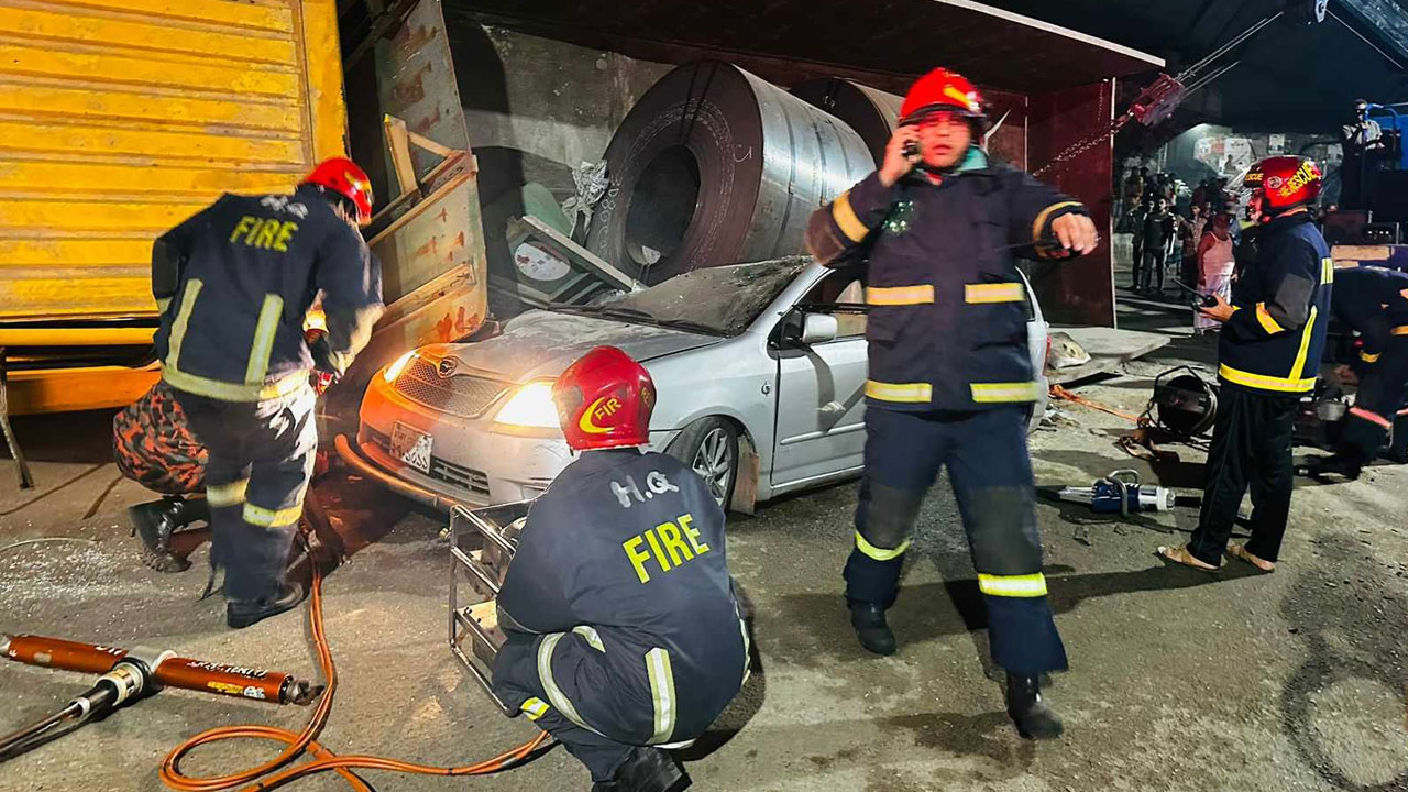এবিষয়ে ওয়ারী থানার পরিদর্শক (তদন্ত) মুজিবুর রহমান বলেন, প্রাভেটকারের ভেতরে আমরা একজনকে দেখতে পাচ্ছি আটকে আছেন। তাকে গুরুতর আহত অবস্থায় দেখা গেছে। ভেতরে আটকে থাকা ব্যক্তি অচেতন অবস্থায় আছেন। আমাদের উদ্ধার কাজ চলছে। উদ্ধার কাজ শেষ হলে বিস্তারিত বলা যাবে।