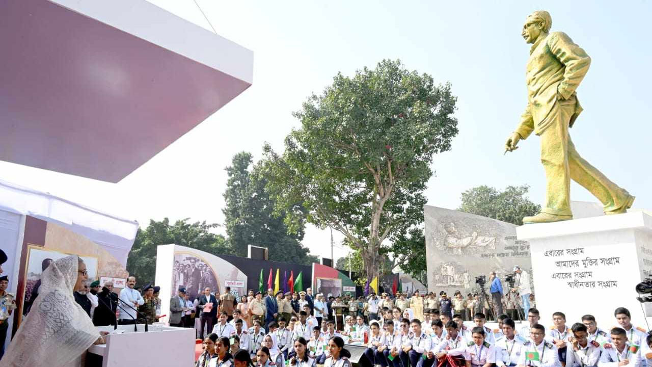 এসময় প্রধানমন্ত্রী বলেন, বাঙালি জাতি যুদ্ধ করে বিজয় অর্জন করেছে। বিজয়ী জাতি হিসেবে আমরা বিশ্বে মর্যাদা পেয়েছি। এ বাংলাদেশ একসময় আজকের বাংলাদেশ ছিল না। এমনকি ১৫ বছর আগের বাংলাদেশেও এখনকার বাংলাদেশ নয়। ক্ষুধা, দারিদ্র্য, শিক্ষার অভাব, চিকিৎসাহীনতা, গৃহহীন ও ভূমিহীন মানুষের ক্রন্দনে বাংলার আকাশ-বাতাস ভারী ছিল। এই বাঙালি জাতিকে আত্মসম্মানে মুক্তি দেওয়ার জন্যই জাতির পিতার সংগ্রাম। জাতির পিতা নিজের জীবনটা উৎসর্গ করেছিল এ দেশের মানুষের জন্য।
