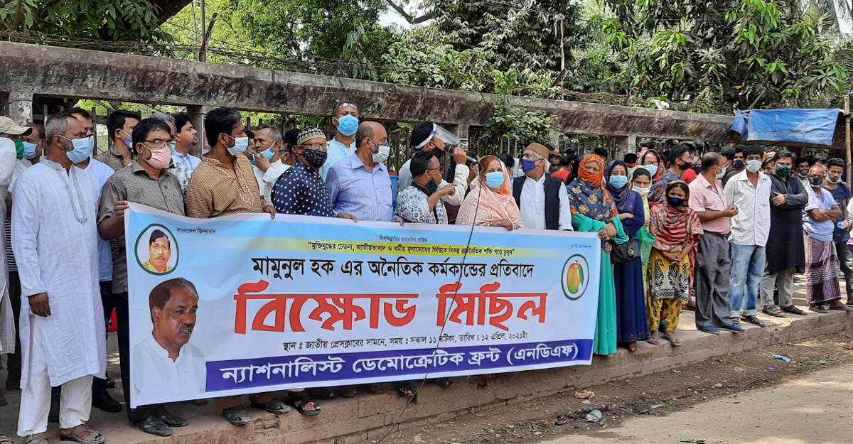 জাতীয় প্রেসক্লাবের সামনে ন্যাশনাল ডেমোক্রেটিক ফ্রন্ট আয়োজিত বিক্ষোভ সমাবেশ/ ছবি- ঢাকা পোস্ট