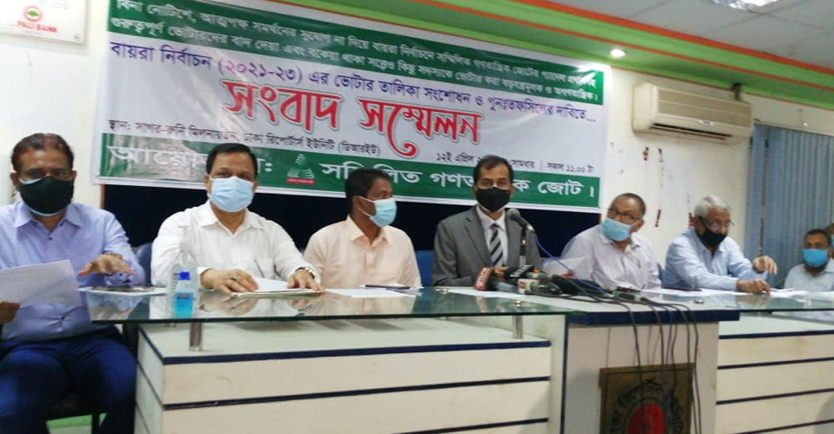 সোমবার (১২ এপ্রিল) ঢাকা রিপোর্টার্স ইউনিটির সাগর-রুনি মিলনায়তনে আয়োজিত সংবাদ সম্মেলনে এ দাবি জানান সম্মিলিত গণতান্ত্রিক জোটের প্যানেল প্রধান মোহাম্মদ রুহুল আমিন স্বপন।