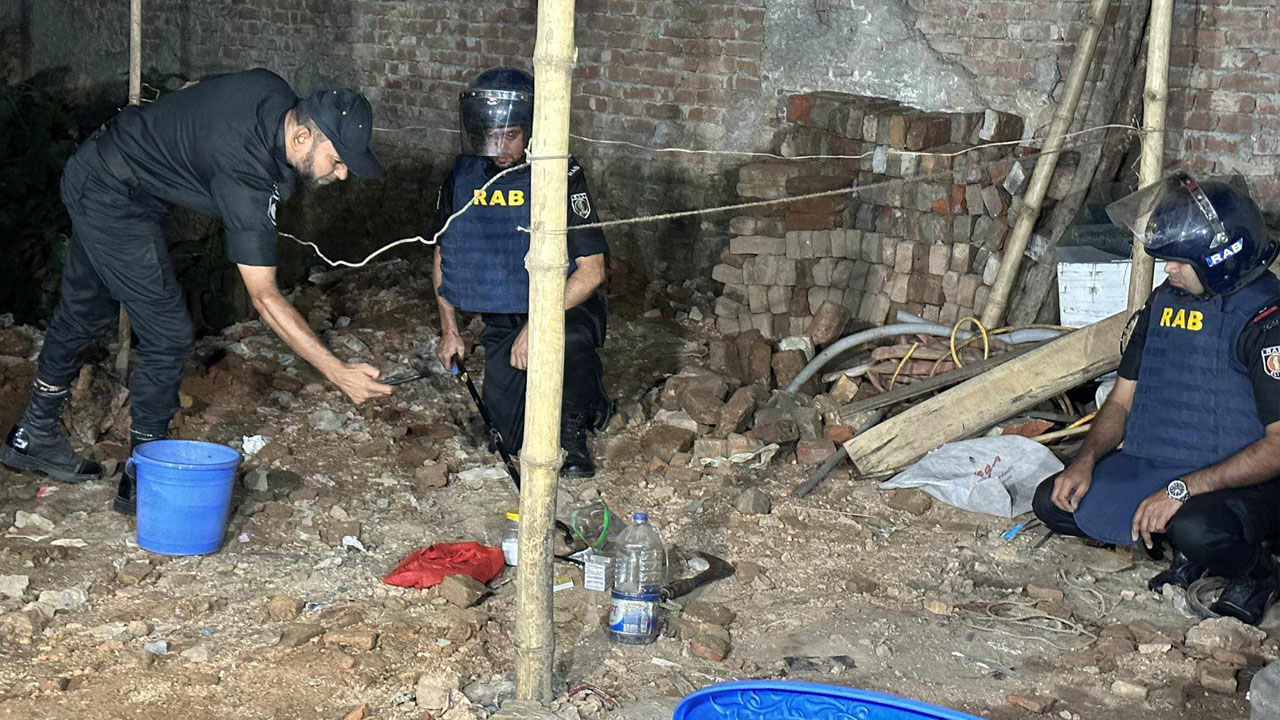 বোমাসাদৃশ বস্তু দেখতে পেয়ে পুরান ঢাকার নবাবপুর রোডের বাড়িটিতে অভিযান শেষ করেছে র্যাবের বোমা ডিসপোজাল ইউনিট। ভবনটি থেকে লাল-কালো স্কচটেপ মোড়ানো ছয়টি ককটেল ও কিছু বিস্ফোরক দ্রব্য উদ্ধার করা হয়েছে।