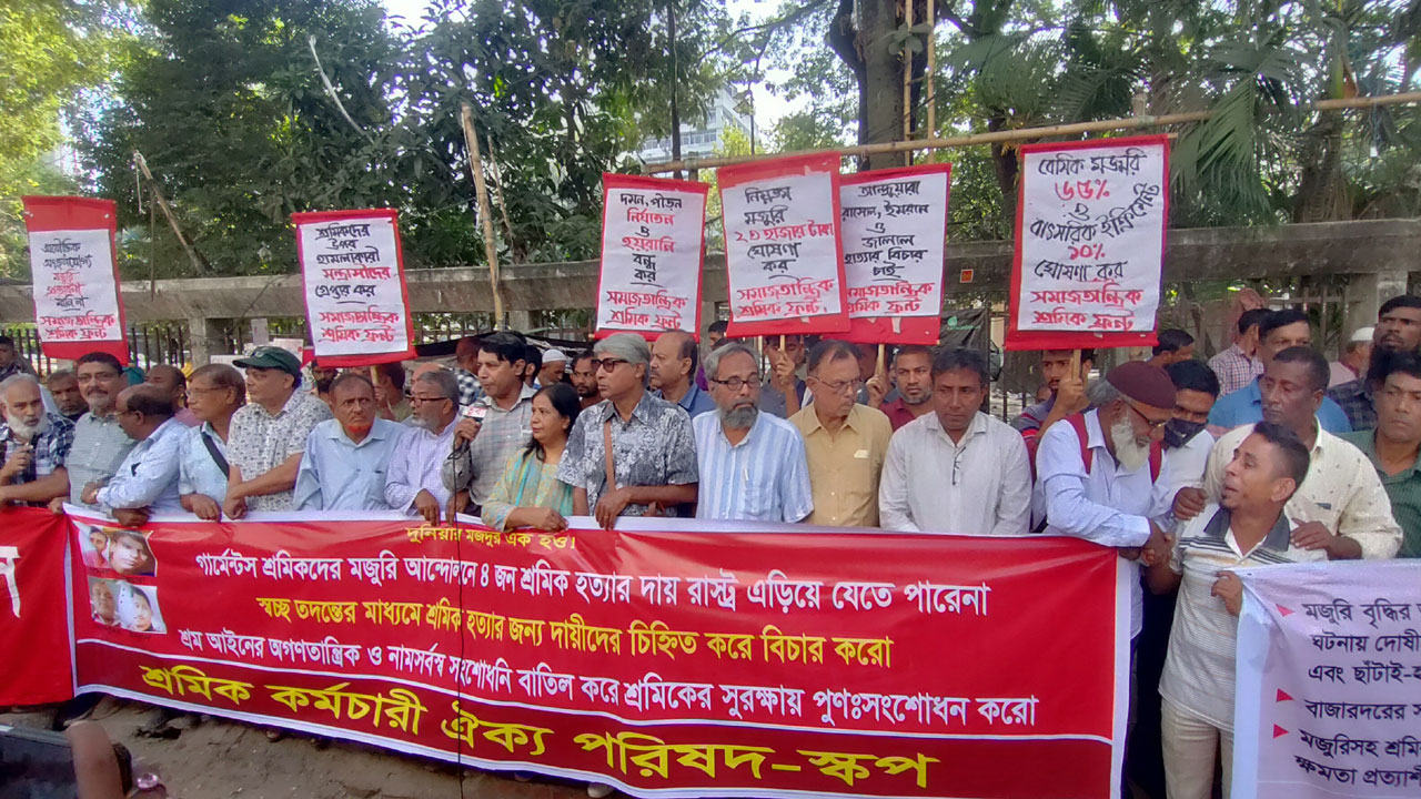 তারা বলেন, গার্মেন্টস শ্রমিকদের মজুরি বৃদ্ধির আন্দোলনে চার জন শ্রমিককে নির্মমভাবে হত্যা করা হয়েছে। এই দায় রাষ্ট্র এড়িয়ে যেতে পারে না। শ্রমিক হত্যায় জড়িতদের চিহ্নিত করে বিচারের আওতায় আনতে হবে। শ্রম আইনের অগণতান্ত্রিক ও নাম সর্বস্ব সংশোধনী বাতিল করে তা পুনঃসংশোধন করতে হবে।
