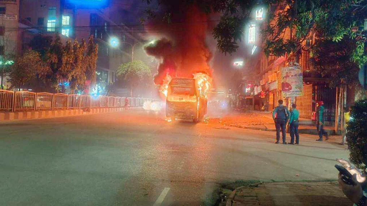 মধ্যরাতে ধানমন্ডিতে যাত্রীবাহী বাসে আগুন