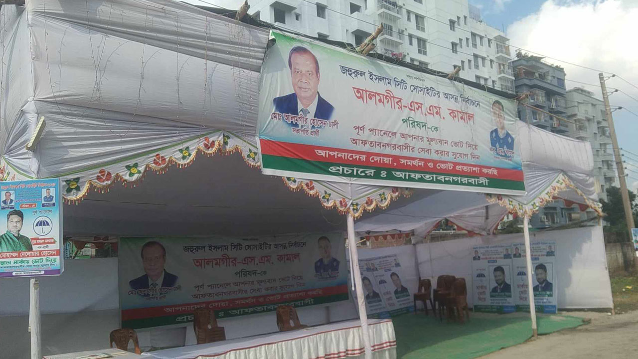 আফতাবনগরে নির্বাচনী হাওয়া, ছেয়ে গেছে ব্যানার-ফেস্টুনে