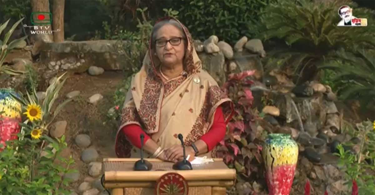 শেখ হাসিনা বলেন, ‘তবে আমাদের সবাইকে সাবধান হতে হবে। আমাদের প্রত্যেকের দায়িত্ব আমাদের নিজের, পরিবারের সদস্যদের এবং প্রতিবেশীর সুরক্ষা প্রদানের। কাজেই ভিড় এড়িয়ে চলুন। বাইরে বের হলে মাস্ক ব্যবহার করুন। ঘরে ফিরে পরিষ্কার-পরিচ্ছন্ন হয়ে গরম পানির ভাপ নিন। করোনাভাইরাস মোকাবিলায় সরকার ইতোমধ্যে ১৮ নির্দেশনা জারি করেছে। আমরা যদি সবাই করোনাভাইরাস মোকাবিলায় স্বাস্থ্যবিধি মেনে চলি, অবশ্যই এই মহামারিকে আমরা নিয়ন্ত্রণে রাখতে সক্ষম হব, ইনশাআল্লাহ।’