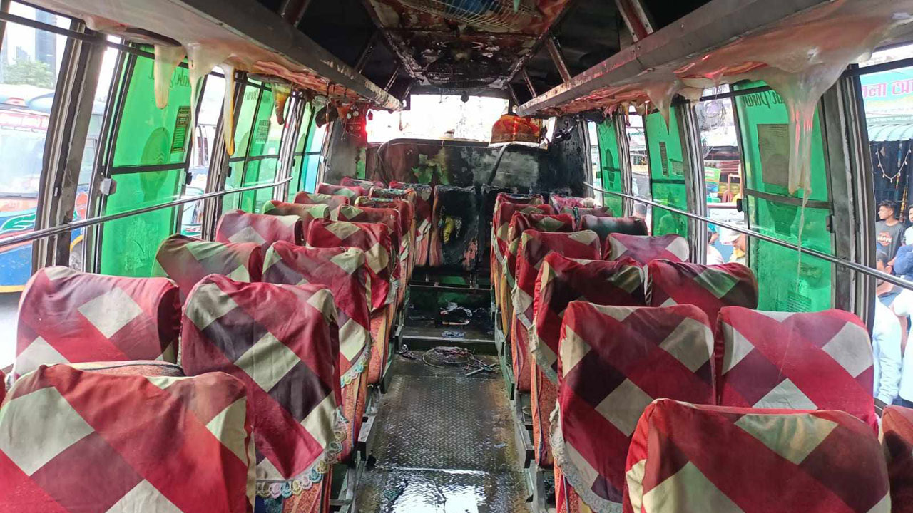 শ্যামলীতে বৈশাখী পরিবহনের বাসে আগুন