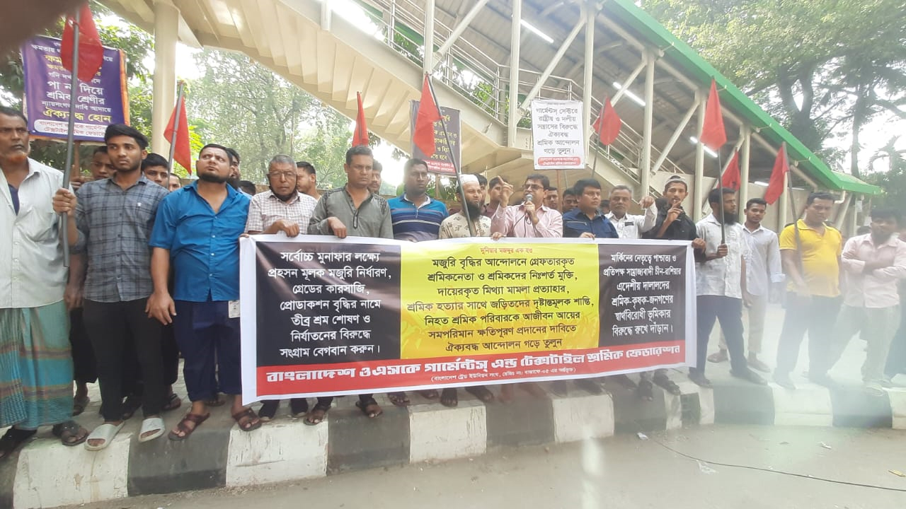 নেতৃবৃন্দ আরও বলেন, মজুরি বৃদ্ধির আন্দোলন দমন করতে সরকার পুলিশ দিয়ে রাসেল হাওলাদার, ইমরান হোসেন, আঞ্জুয়ারা খাতুন ও জালালুদ্দিনকে গুলি করে হত্যা করাসহ অসংখ্য শ্রমিককে আহত করে। অথচ সরকার ও মালিক এ ঘটনায় নিজেদের দায় এড়িয়ে শ্রমিকদের উপর সহিংসতার দায় চাপিয়ে দিচ্ছে। মজুরি বৃদ্ধিতে গার্মেন্ট শ্রমিক আন্দোলনের নেতা বাবুল হোসেনসহ গ্রেপ্তার হওয়া সকল শ্রমিক নেতা ও কারখানা শ্রমিকদের অবিলম্বে মুক্তি দিয়ে সকল মিথ্যা মামলা প্রত্যাহারের আহ্বান জানাচ্ছি।