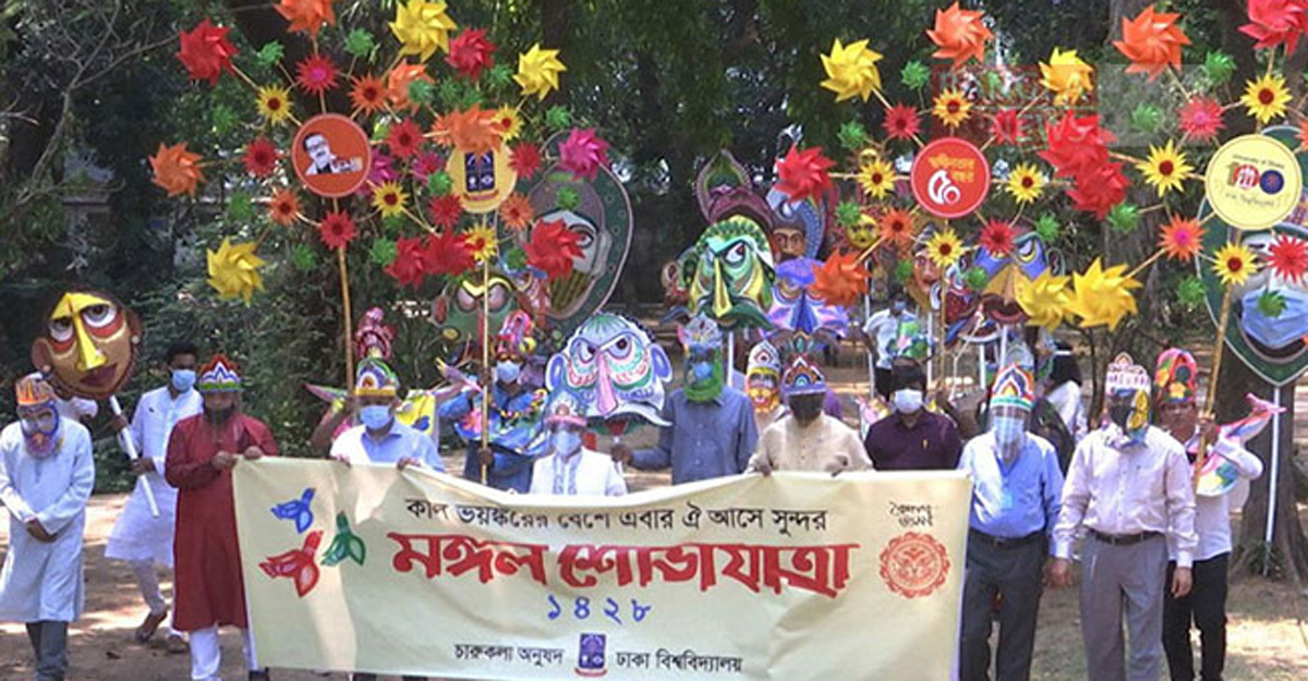 ‘কাল ভয়ঙ্করের বেশে আসে ঐ সুন্দর’ প্রতিপাদ্যকে সামনে রেখে কোভিড-১৯ এর কারণে উদ্ভূত পরিস্থিতি বিবেচনা করে ঢাকা বিশ্ববিদ্যালয়ে (ঢাবি) চারুকলায় সীমিত পরিসরে প্রতীকী কর্মসূচির মাধ্যমে উদযাপিত হয়েছে বাংলা নববর্ষ-১৪২৮।