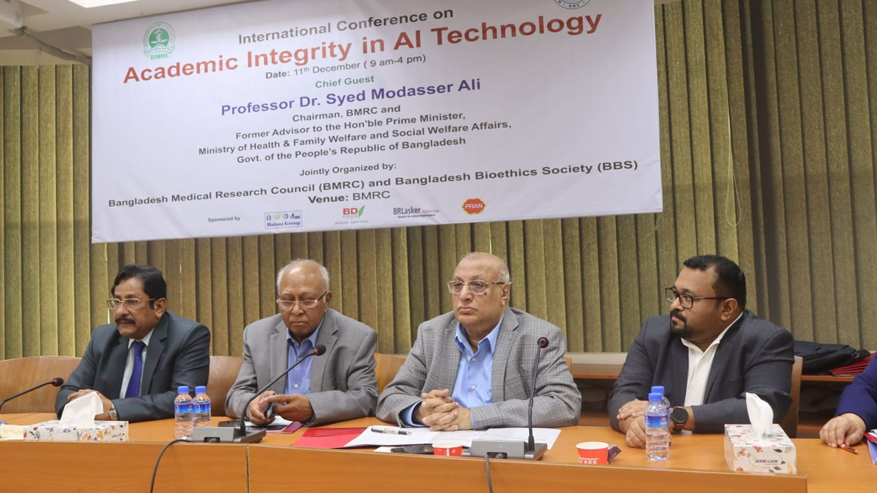 সোমবার (১১ ডিসেম্বর) বাংলাদেশ বায়োএথিক্স সোসাইটি (বিবিএস) ও বাংলাদেশ মেডিকেল রিসার্চ কাউন্সিলের (বিএমআরসি) যৌথ উদ্যোগে ‘কৃত্রিম বুদ্ধিমত্তার প্রযুক্তিতে একাডেমিক ইন্টিগ্রিটির প্রয়োজন’ শীর্ষক আন্তর্জাতিক সম্মেলনে তিনি এসব কথা বলেন।