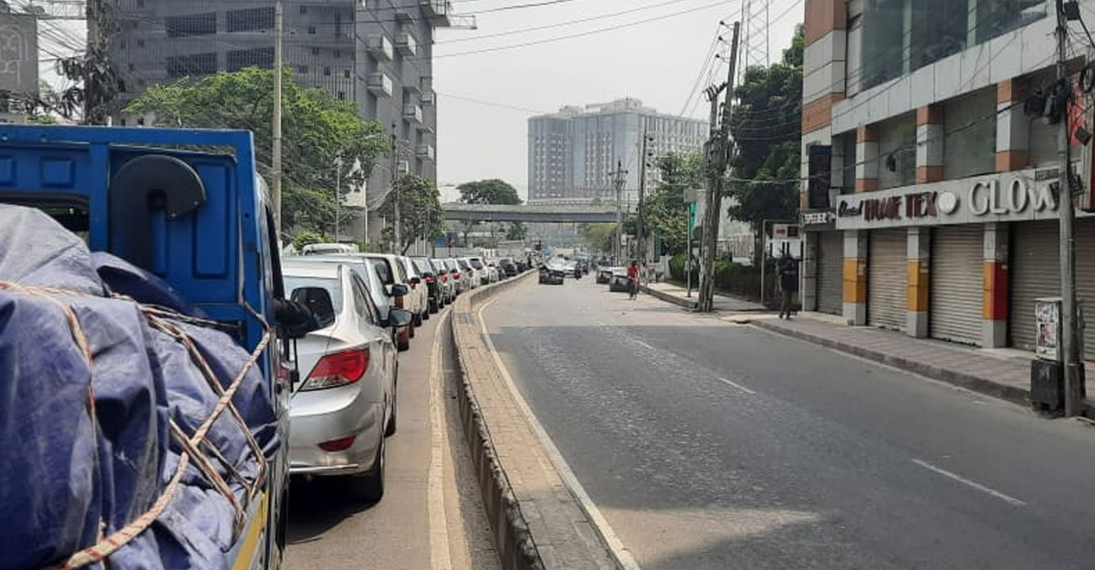 বিমান বন্দর সড়কের জসীমউদ্দিন মোড়, কাওলা, কুর্মিটোলা হাসপাতালের সামনে গাড়ির সারি ছিল। কুর্মিটোলা হাসপাতালের বিপরীতে বসানো চেকপোস্টেও গাড়ির দীর্ঘ সারি তৈরি হয়। সেখানে অ্যাম্বুলেন্সে রোগীরা আটকা পড়েন, প্রাইভেট কারে জরুরি সেবার কর্মীরাও আটকা পড়েন। সকাল আটটায় ৬০ ফিট সড়কের স্থানে স্থানে প্রাইভেট কারের জট ছিল। বিজয় সরণির উড়োজাহাজ মোড়ে যানজট ছিল। এখানে আশপাশে মেট্রোরেল প্রকল্পের কাজের জন্য সড়ক সঙ্কুচিত থাকায় জটে আটকা পড়ে একের পর এক গাড়ি। তার মধ্যে প্রাইভেট কারের আধিক্য ছিল।