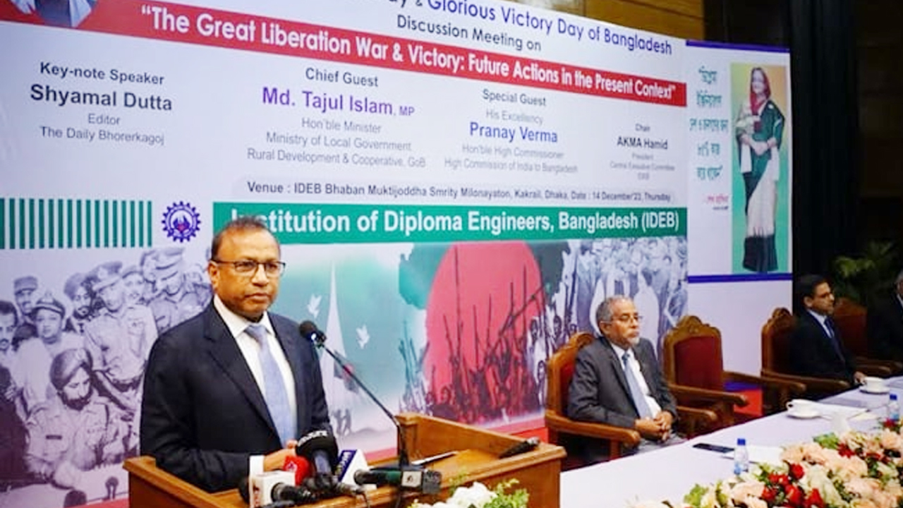বৃহস্পতিবার শহীদ বুদ্ধিজীবী দিবস ও মহান বিজয় দিবস উপলক্ষ্যে ঢাকার ইনস্টিটিউট অব ডিপ্লোমা ইঞ্জিনিয়ার্স এ আয়োজিত ‘মহান মুক্তিযুদ্ধ ও বিজয় : বর্তমানের প্রেক্ষিতে ভবিষ্যৎ কর্মপরিকল্পনা’ শীর্ষক এক আলোচনা সভায় প্রধান অতিথির বক্তব্যে তিনি এসব কথা বলেন।